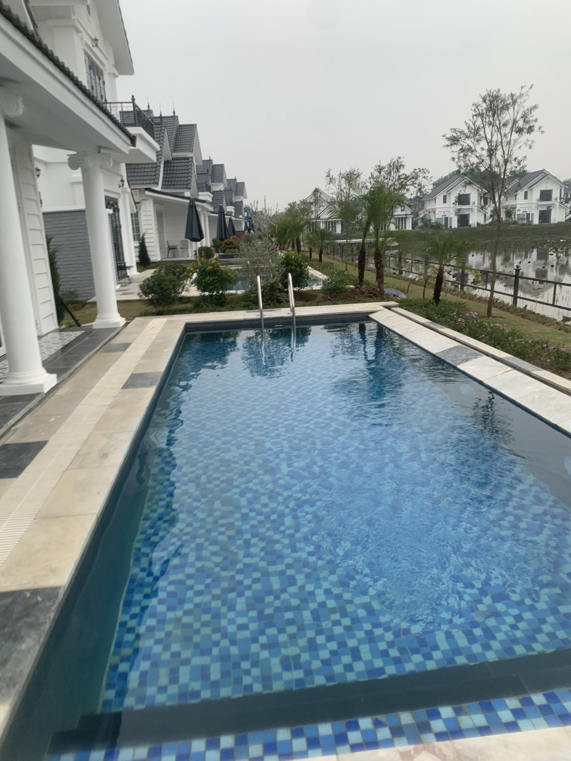 Khuôn viên cảnh quan, bể bơi được hoàn thiện