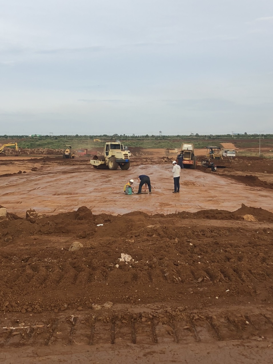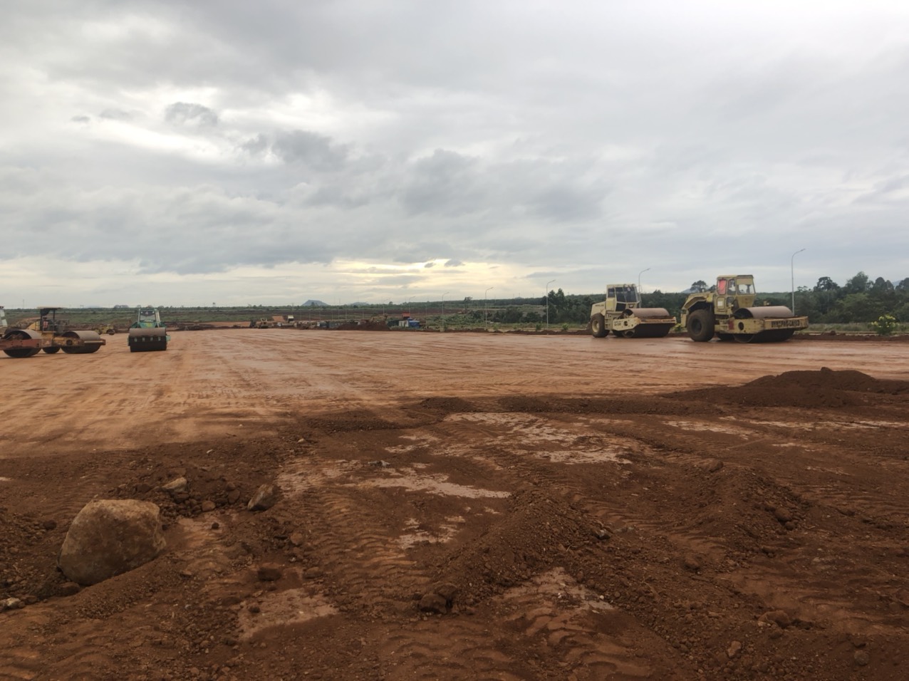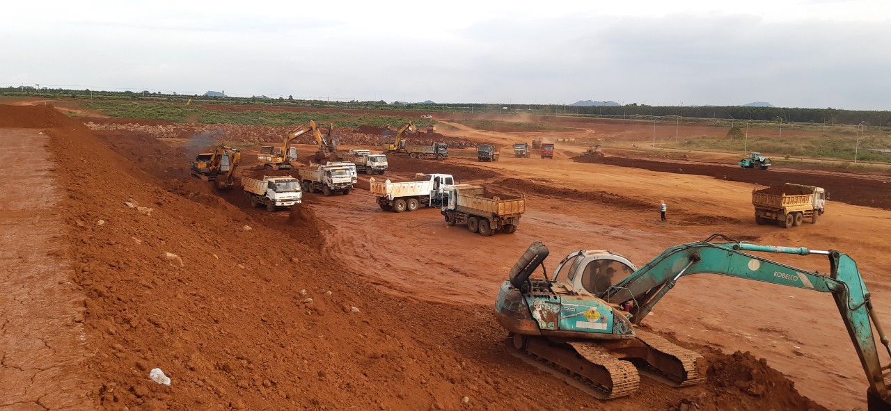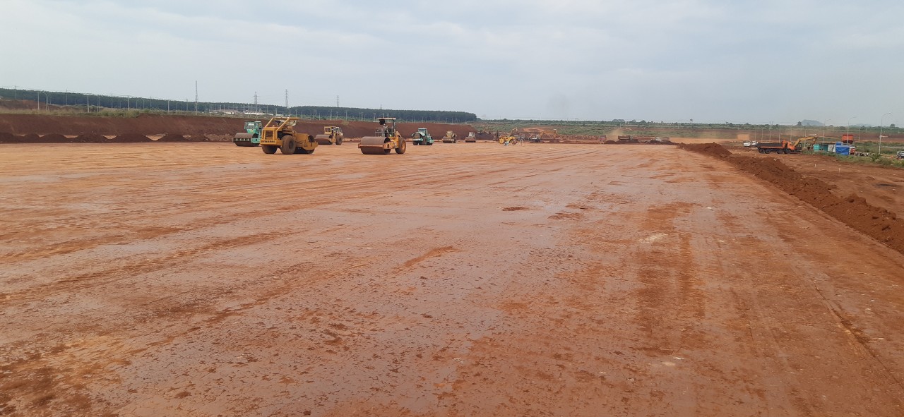 Tính đến thời điểm hiện tại, sau 6 tháng thi công mặc dù gặp nhiều khó khăn do ảnh hưởng thời tiết, dịch bệnh giãn cách, tuy nhiên nhà thầu Anh Phát đã nỗ lực tập trung huy động hàng loạt xe máy, thiết bị tập trung đẩy nhanh tiến độ thi công đào, đắp theo hợp đồng đã ký. Nhà thầu đã cơ bản hoàn thiện mặt bằng các xưởng 6,7,8,9 để bàn giao cho Chủ đầu tư và tiếp tục triển khai đào đắp, lu lèn các khu vực còn lại của dự án, mục tiêu đặt ra đến giữa tháng 12 hoàn thành toàn bộ khối lượng công việc theo hợp đồng, bàn giao mặt bằng sạch để Chủ đầu tư triển khai các hạng mục xây dựng tiếp theo.