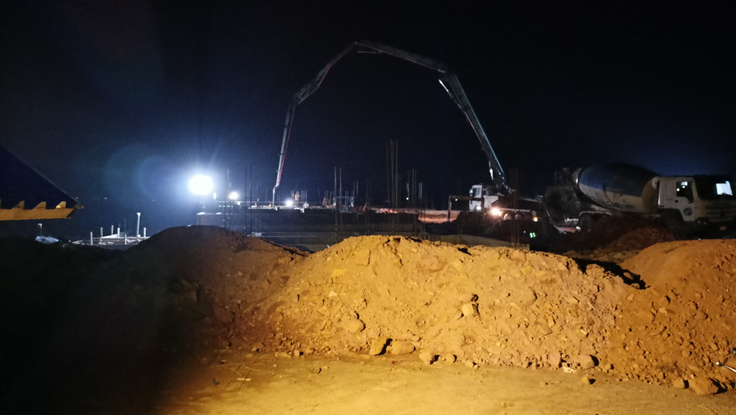 Kỹ sư, công nhân tăng ca đêm đổ bê tông