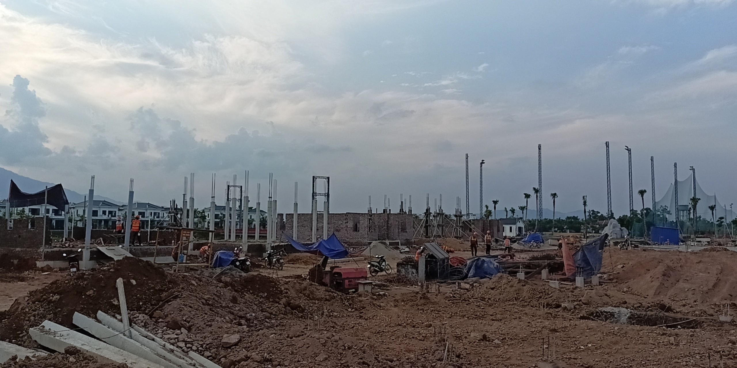 Một góc dự án đang triển khai thi công xen kẽ với các hạng mục đã đưa vào sử dụng