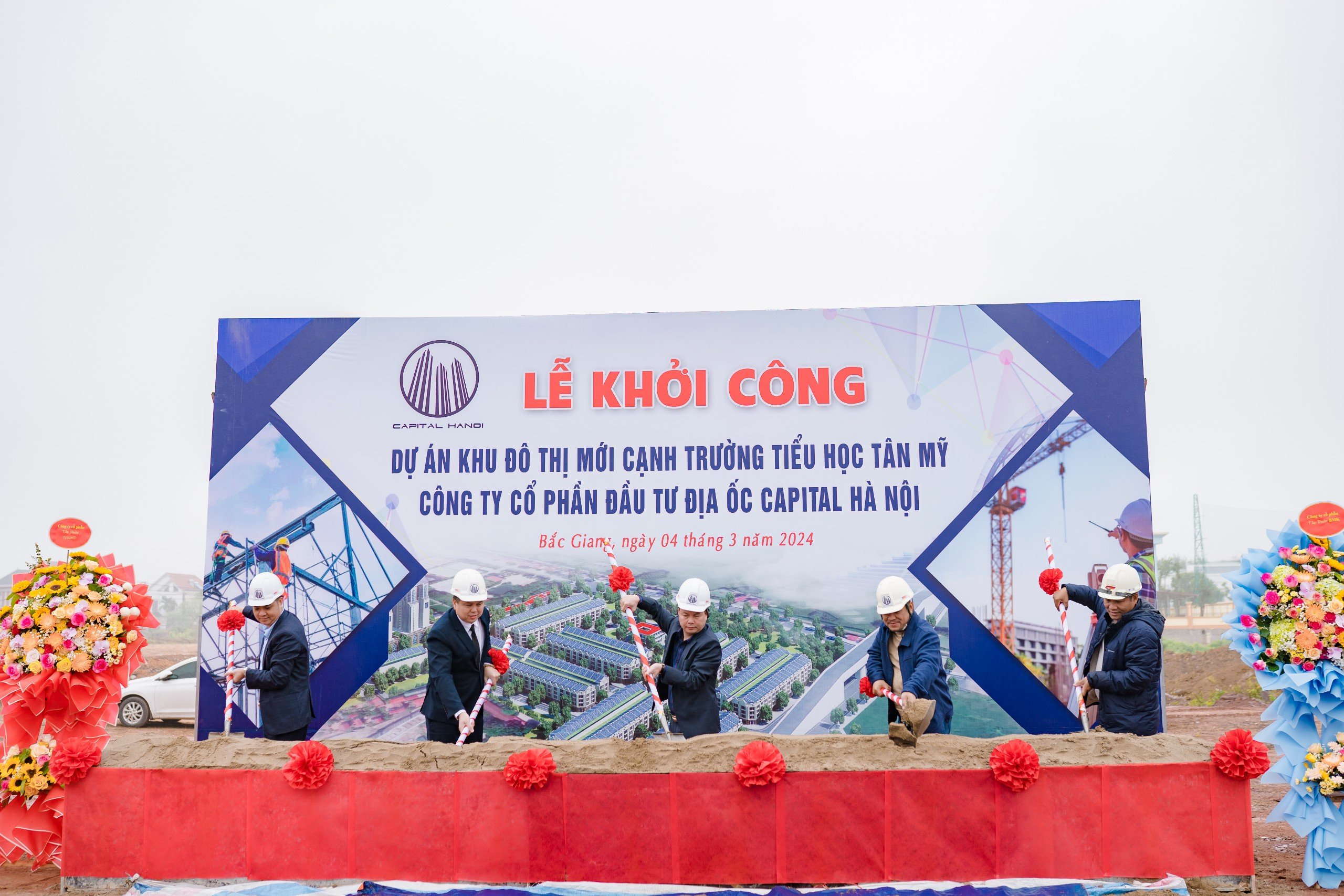 Sáng ngày 4/3/2024, Chủ đầu tư dự án (Công ty Cổ phần Đầu tư địa ốc Capital Hà Nội) cùng nhà thầu thi công (Công ty Cổ phần Đầu tư Xây dựng Kỹ thuật và Thương mại Anh Phát) đã chính thức tổ chức Lễ khởi công dự án Khu đô thị mới cạnh trường tiểu học Tân Mỹ, xã Tân Mỹ, thành phố Bắc Giang, tỉnh Bắc Giang.