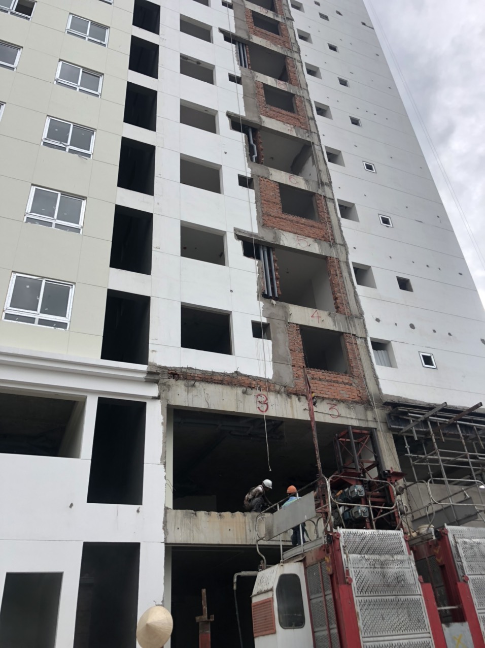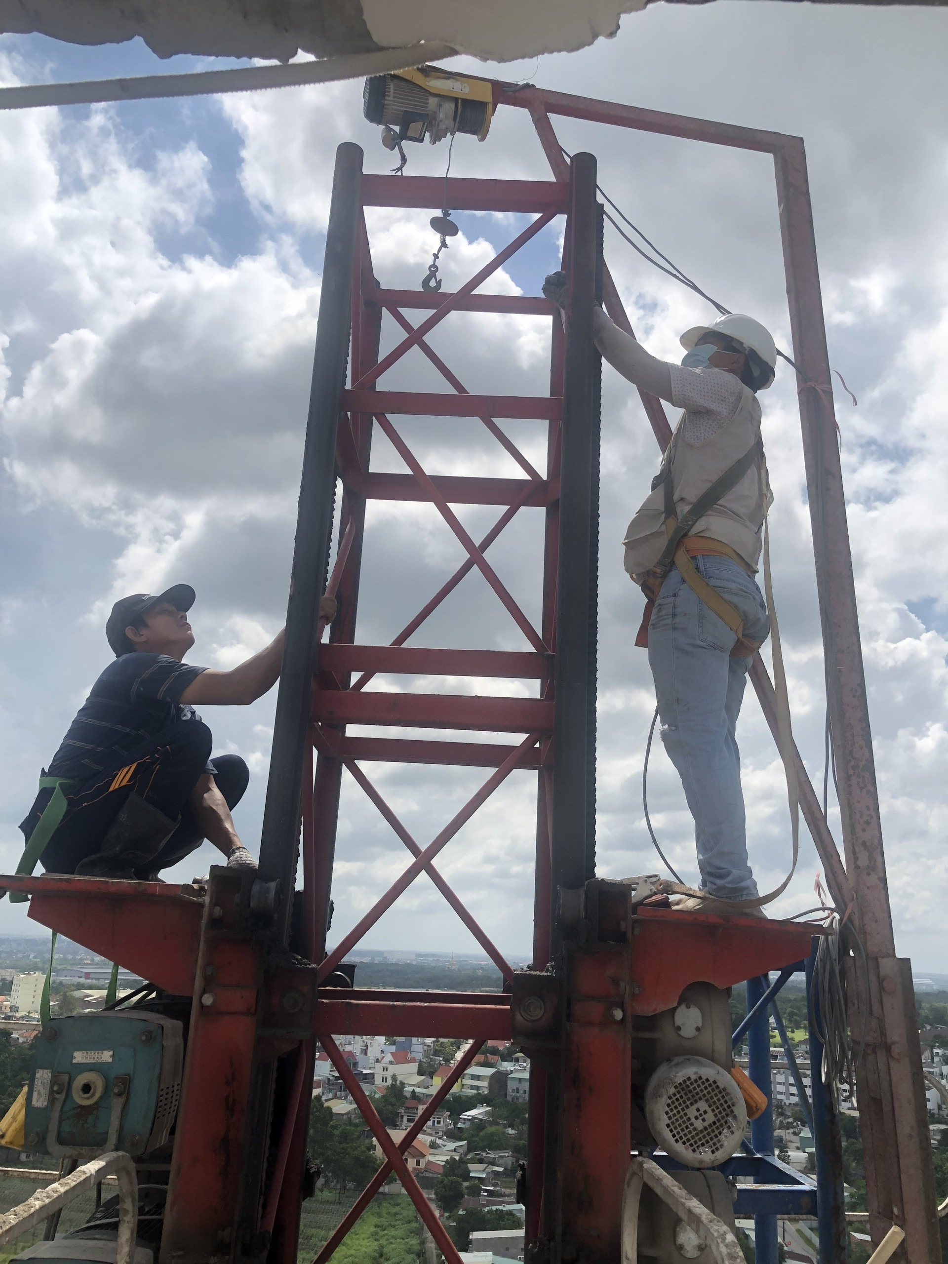 On June 22, 2021, contractor Anh Phat deployed the work of removing the 1000kg cage hoist at Block B6 - Topaz Home 2 Apartment, District 9, Ho Chi Minh City to complete the construction of the hoist shafts. the rest, ensuring the timely progress of handing over Block B6 as scheduled in the third quarter of 2021. The dismantling process took place safely, strictly complied with regulations on occupational safety when working at height and was highly appreciated by the representative of the Supervisory Board and the Investor.